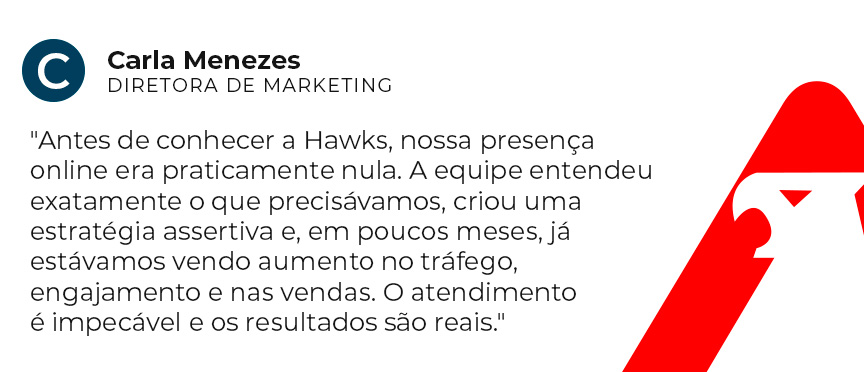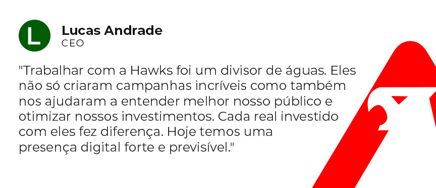 A Hawk é uma assessoria de marketing e vendas especializada em tráfego pago. Nosso foco é acelerar o crescimento dos nossos clientes com estratégias personalizadas, performance real e soluções criativas que entregam resultado.